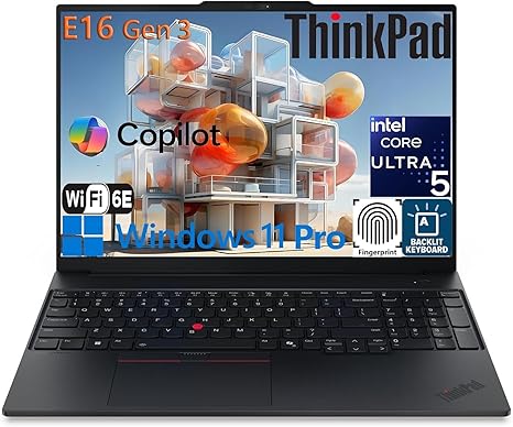 - The Lenovo ThinkPad E16 Gen 3 ensures elevated productivity with the latest Intel Core Ultra 5 225H, 14C (4P + 8E + 2LPE) / 14T, Max Turbo up to 4.9GHz, 18MB processor. This sleek, durable laptop boasts unmatched AI power for your seamless workload optimization and handling most demanding tasks, tailored for professionals who need a reliable and high-performing device for their work.