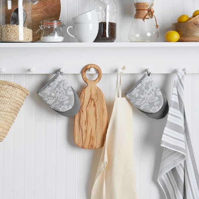 - COORDINATING KITCHEN LINENS: Display your mini oven mitts with coordinating kitchen essentials from the Martha Stewart Floral Vine collection that includes matching kitchen towels and oven mitts for a coordinated look. Sold separately.